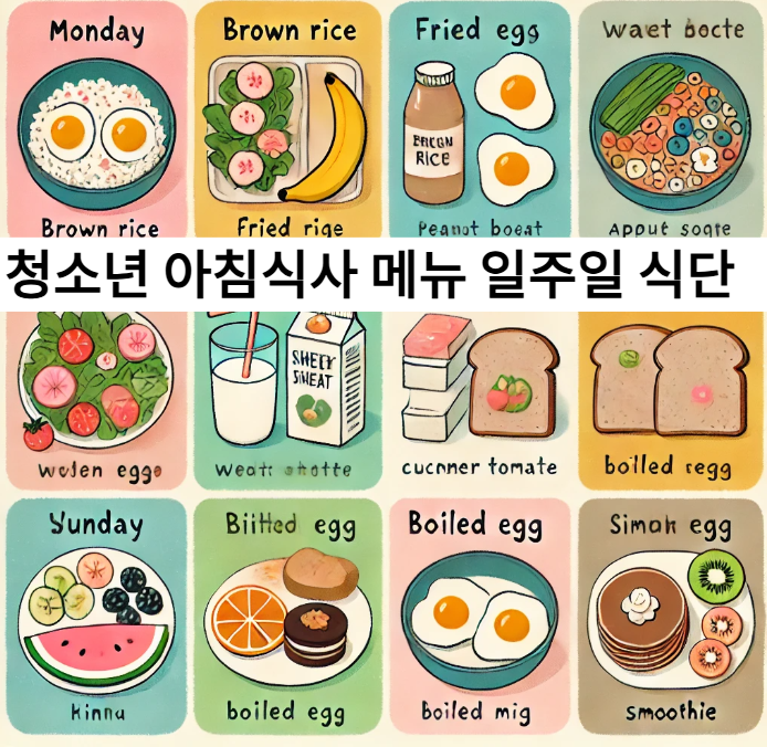 청소년 아침식사 메뉴 일주일 식단을 알아보겠습니다.